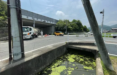 「水路・交差点横断」を伴う困難な施工条件であるため施工が不可能。